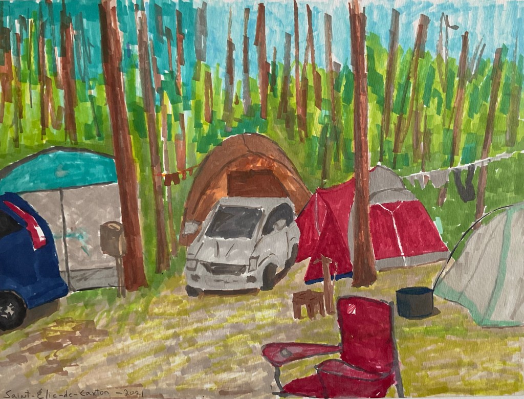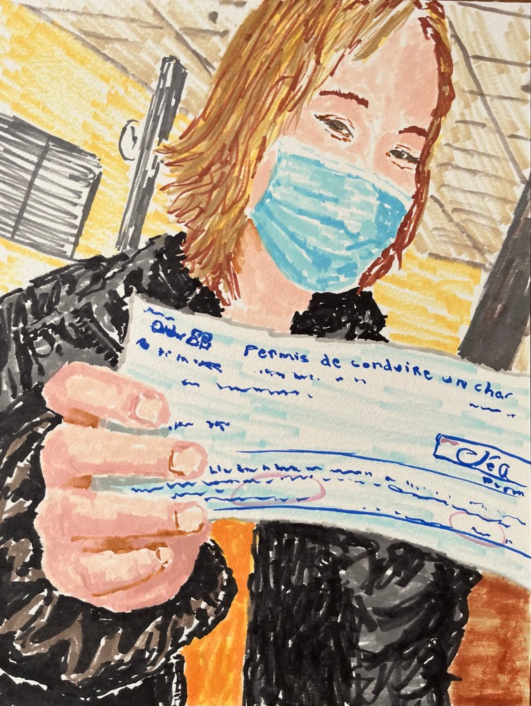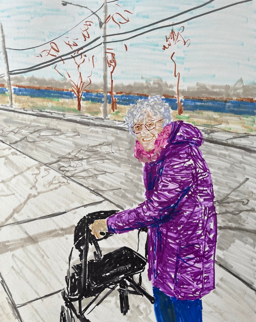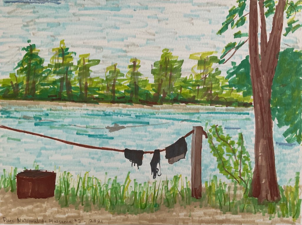 C’est aussi ça le Chemin Roxham – Marqueurs sur papier, 16 x 20 pouces, 2022