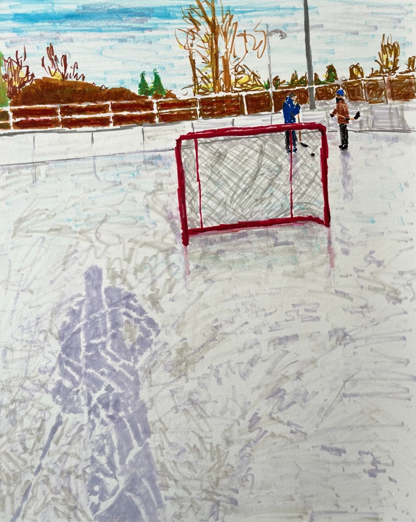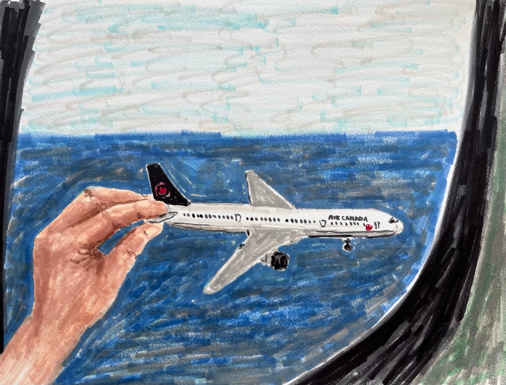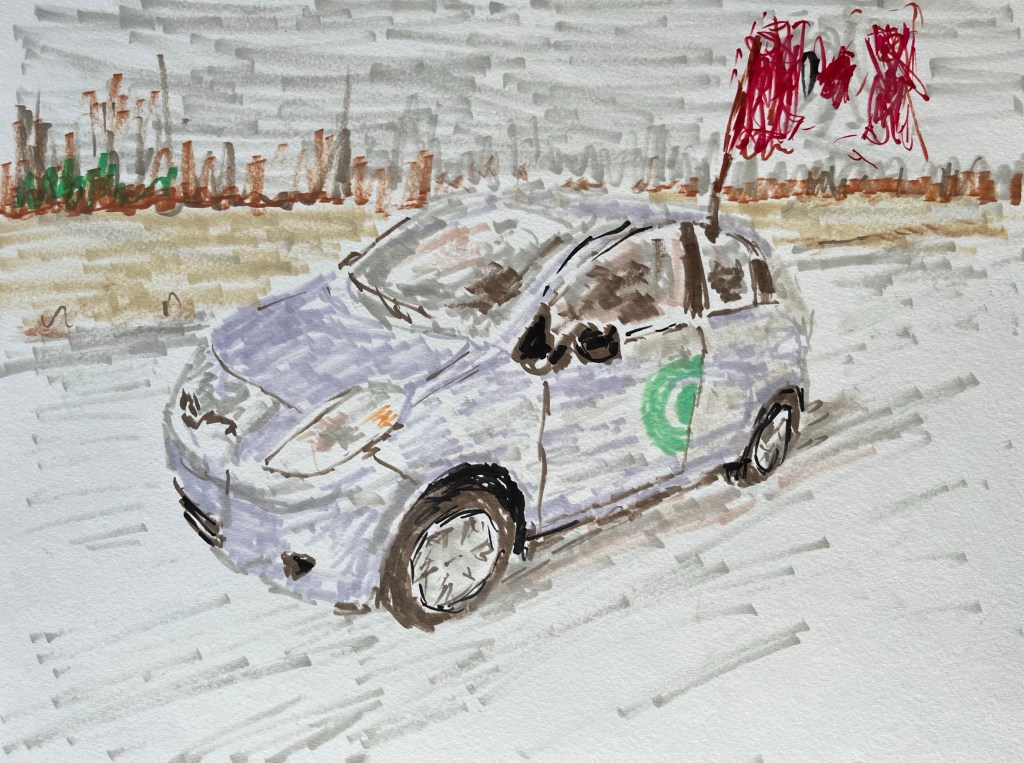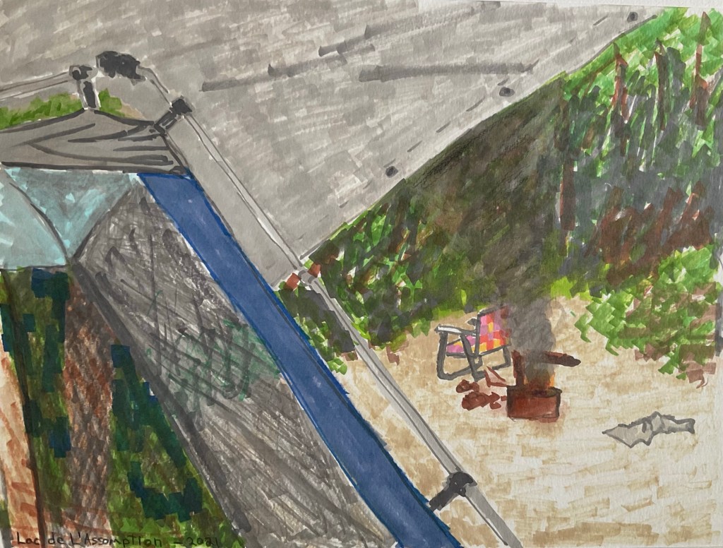 C’est aussi ça le Chemin Roxham – Marqueurs sur papier, 16 x 20 pouces, 2022