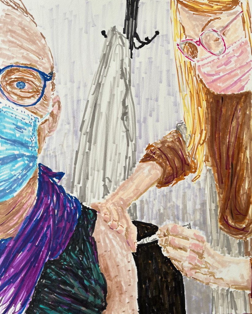 L’important c’est la santé – Marqueurs sur papier, 12 x 16 pouces, 2022