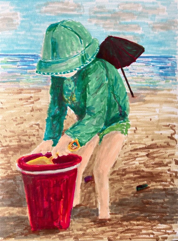 Avez-vous vu ma mer ? – Marqueurs sur papier, 16 x 20 pouces, 2022