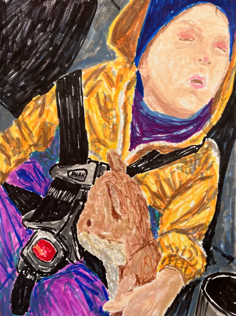Innocence perdue – Marqueurs sur papier, 16 x 20 pouces, 2022