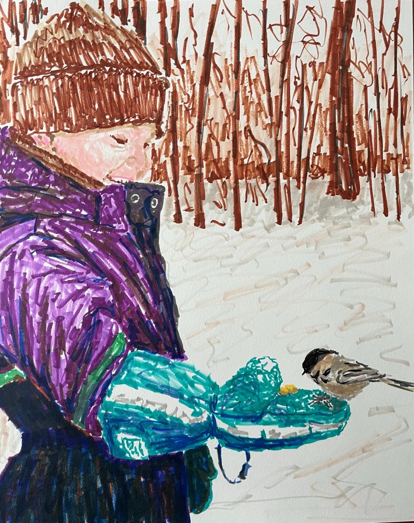 Curieux écureuil – Marqueurs sur papier, 16 x 20 pouces, 2022