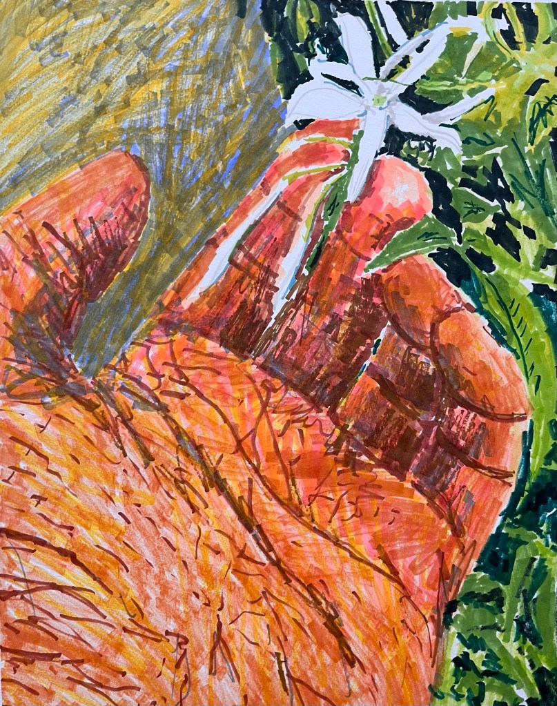 Prendre une fleur par la main Prendre une fleur par la main – Marqueurs sur papier, 20 x 16 pouces, 2023. Partager : Cliquez pour partager sur X(ouvre dans une nouvelle fenêtre) X Cliquez pour partager sur Facebook(ouvre dans une nouvelle fenêtre) Facebook J'aime chargement… Laisser un commentaire Annuler la réponse Δ