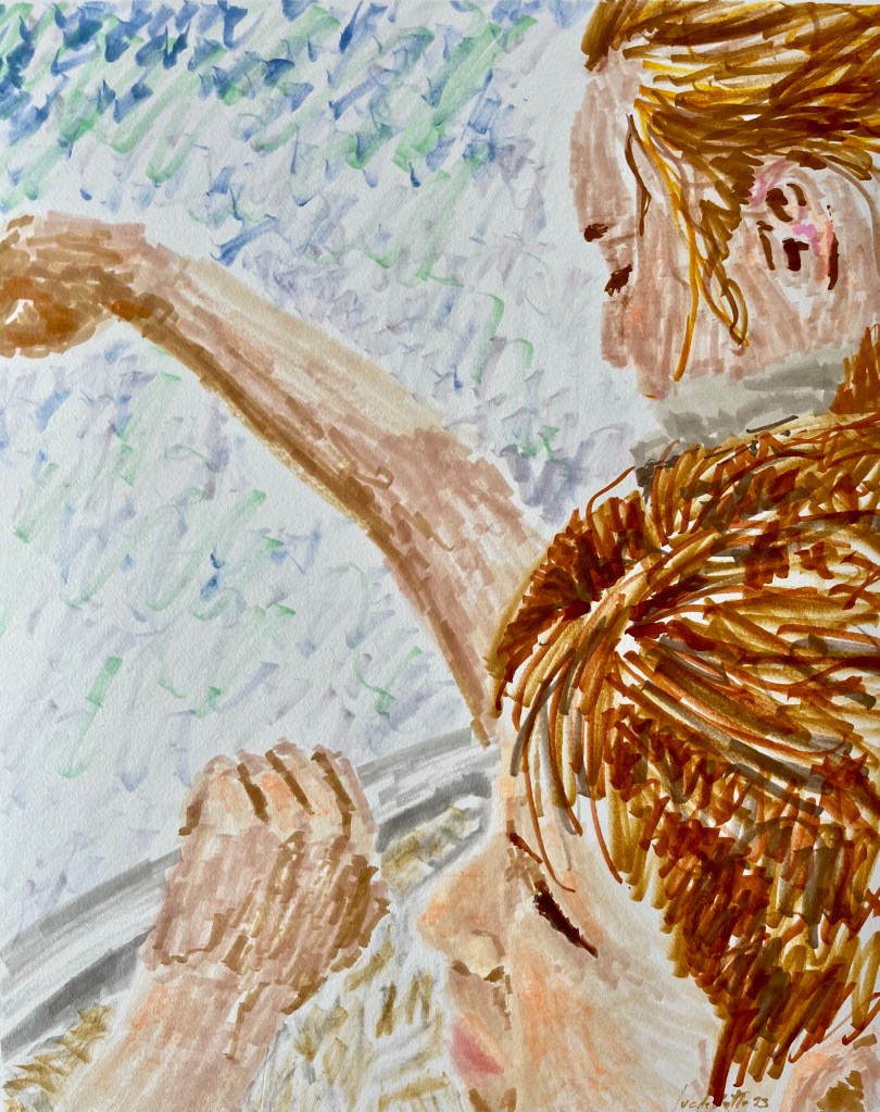 Houle la la ! Houle la la ! – Marqueurs sur papier, 16 x 20 pouces, 2023 Partager : Cliquez pour partager sur X(ouvre dans une nouvelle fenêtre) X Cliquez pour partager sur Facebook(ouvre dans une nouvelle fenêtre) Facebook J'aime chargement… Laisser un commentaire Annuler la réponse Δ