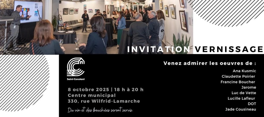 Je participe à cette belle exposition collective à Saint-Constant. Vous avez jusqu’au 28 janvier 2026 pour en profiter.