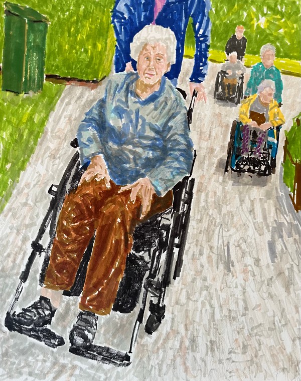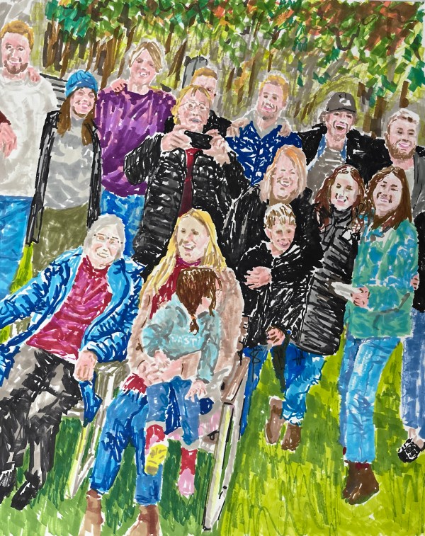Tout le monde est là ? - Marqueurs sur papier, 16 x 20 pouces, 2022