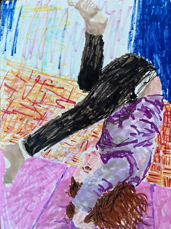 Improvisation picturale - Marqueurs sur papier, 12 x 16 pouces, 2022