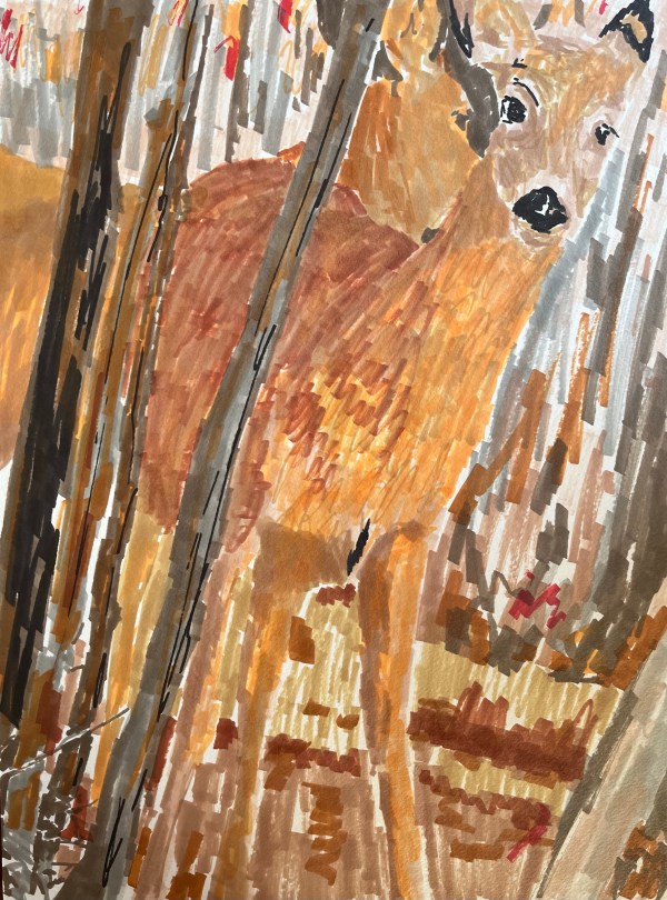 Qui-vive - Marqueurs sur papier, 12 x 16 pouces, 2022