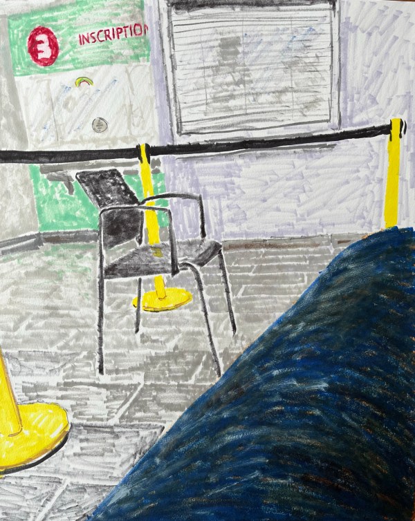 C’est aussi ça le Chemin Roxham - Marqueurs sur papier, 16 x 20 pouces, 2022