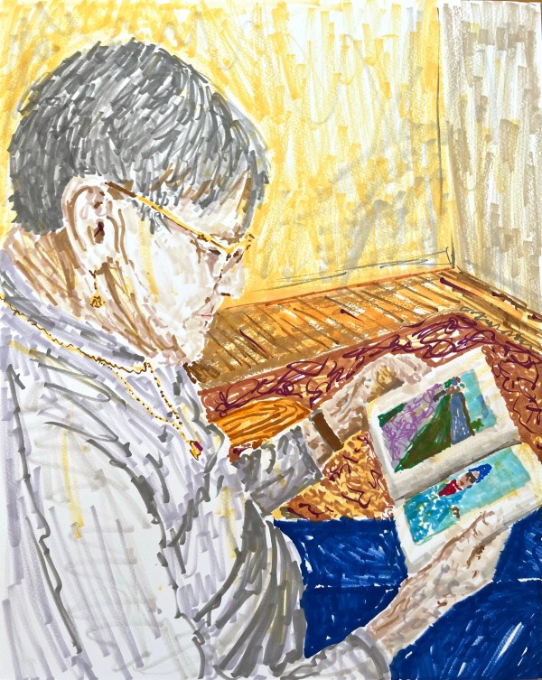 Maman lisant - Marqueurs sur papier, 16 x 20 pouces, 2023