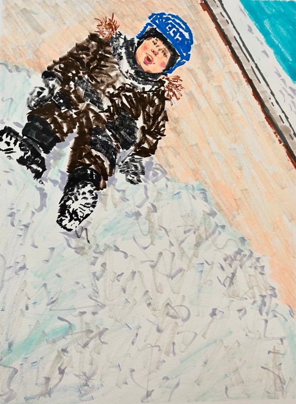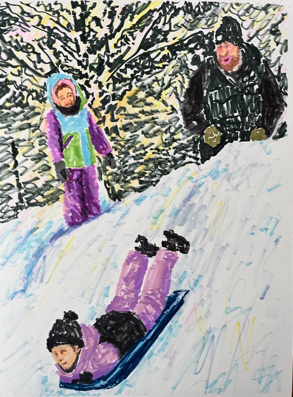 La descente - Marqueurs sur papier, 24 x 18 pouces, 2023.
