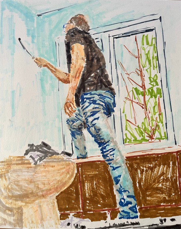 Dans la salle de bain - Marqueurs sur papier, 16 x 20 pouces, 2023