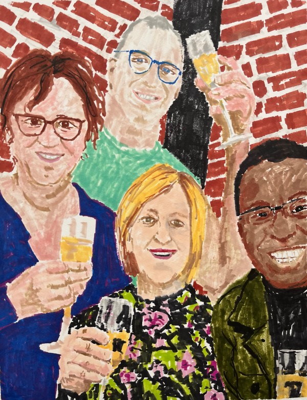 Cheers ! - Marqueurs sur papier, 20 x 16 pouces, 2023.