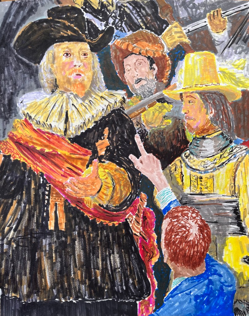 Beau Degas – Marqueurs sur papier, 24 x 20 pouces, 2023.