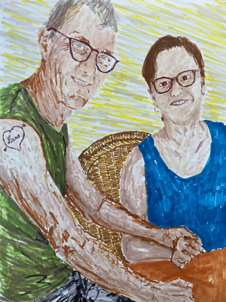 Face à face – Marqueurs sur papier, 16 x 20 pouces, 2022