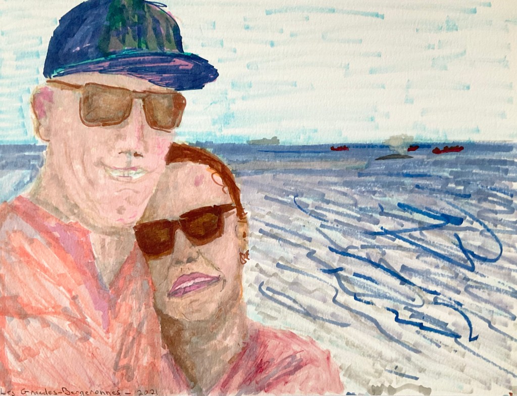 Un petit « selfie » sur le bord du fleuve, oui, au loin quelques baleines.